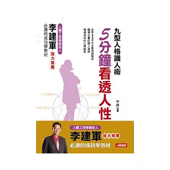 所謂「一種米養百樣人」,芸芸眾生除了由膚色、種族、血型等區分之外,其實還能將這「百樣人」用「九型人格」簡單區分為九種人格類型。如果你認為九型人格是某位心理學專家的發明,那就大錯特錯了,其實它是人類長久累積的古老智慧,它歸納出九種性格類型各自具有的天生特質,以及在不同狀況下會產生的不同行為。藉由九型人格可以幫助你了解自己、透視他人,想擁有良好的人際關係嗎?想在職場上立於不敗之地嗎?想尋得最適合自己的終身伴侶嗎?……,你,一定要通曉「九型人格」。